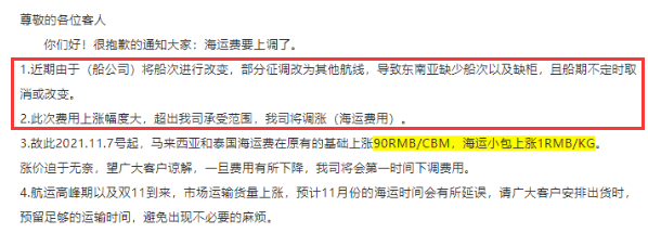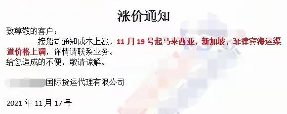货代纷纷涨价,船公司发布涨价通知
