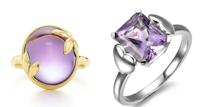 商品属性:贵金属戒指、镶嵌紫水晶。