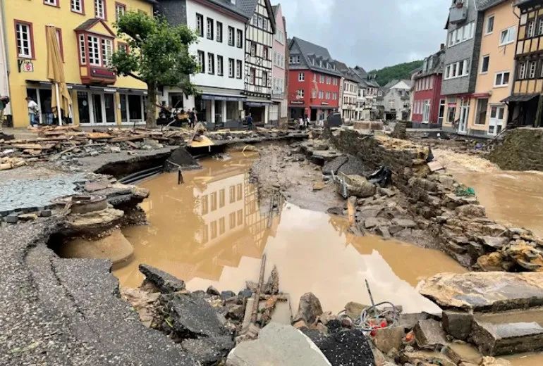贝希特斯加登位于德国南部的巴伐利亚州,当地时间 17 日晚,这里开始下起暴雨,并引发山洪,冲毁了当地的铁路和公路。在德国西部,北莱茵-威斯特法伦州和莱茵兰-普法尔茨州的居民忙着清理洪水过后的废墟,这里是洪灾最严重的地区之一。当局表示,他们预计受害者人数会增加,因为仍有数百人下落不明,但目前尚不清楚有多少人在灾难的混乱和通讯中断的情况下根本无法联系到朋友或家人。