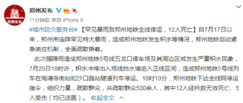 据@郑州发布微博消息称,由于郑州遭遇历史上持续最大强降水,且上游来水量大,郑州常庄水库防汛形势极其严峻。7 月 20 日,河南省遭遇极端强降雨,郑州市多个国家级气象观测站日降雨量突破有气象记录以来历史极值。受强降雨影响,河南省郑州市二七区郭家咀水库水位快速上涨,7 月 21 日 1 时 30 分溃坝。当地已提前转移水库下游群众。根据《国家防汛抗旱应急预案》有关规定,国家防总决定于 7 月 21 日 3 时将防汛 Ⅲ 级应急响应提升至 Ⅱ 级。由于遭遇罕见持续强降雨,郑州市常庄水库、郭家咀水库及贾鲁河等多处工程出现险情,郑州市区出现严重内涝,造成郑州市铁路、公路及民航交通受到严重影响。目前,已转移避险约 10 万人,洪灾已造成郑州市区 12 人死亡。次强降雨造成郑州地铁 5 号线五龙口停车场及其周边区域发生严重积水现象,7 月 20 日 18 时许,积水冲垮出入场线挡水墙进入正线区间,造成郑州地铁5号线列车在海滩寺街站和沙口路站隧道列车停运。18 时 10 分,郑州地铁下达全线网停运指令,组织力量,疏散群众,共疏散群众 500 余人,其中 12 人经抢救无效死亡、 5 人受伤(均已送医)。环境保护对于全球来说,都应该是首位的,无论是日益恶劣气候变化,还是全球持续的冰川融化,这都是大自然给人类最后的警告!来源:以上消息由“海运订舱网”整编自Mike外贸说,如需转载请注明出处。